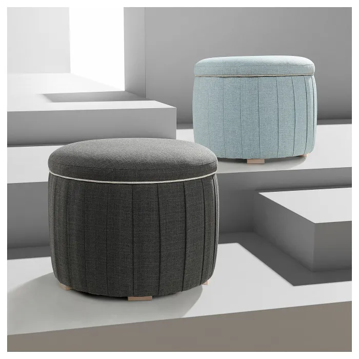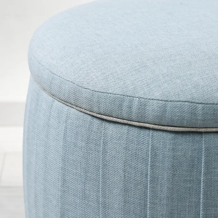 Невеликий, комфортний пуф, який приховує дивовижно великий простір для зберігання. Невелика коштовність з вишуканими деталями, такими як вертикальна, бігала навколо складок або декоративна обробка на кришці.