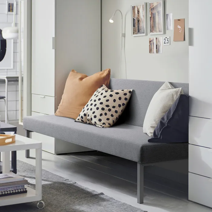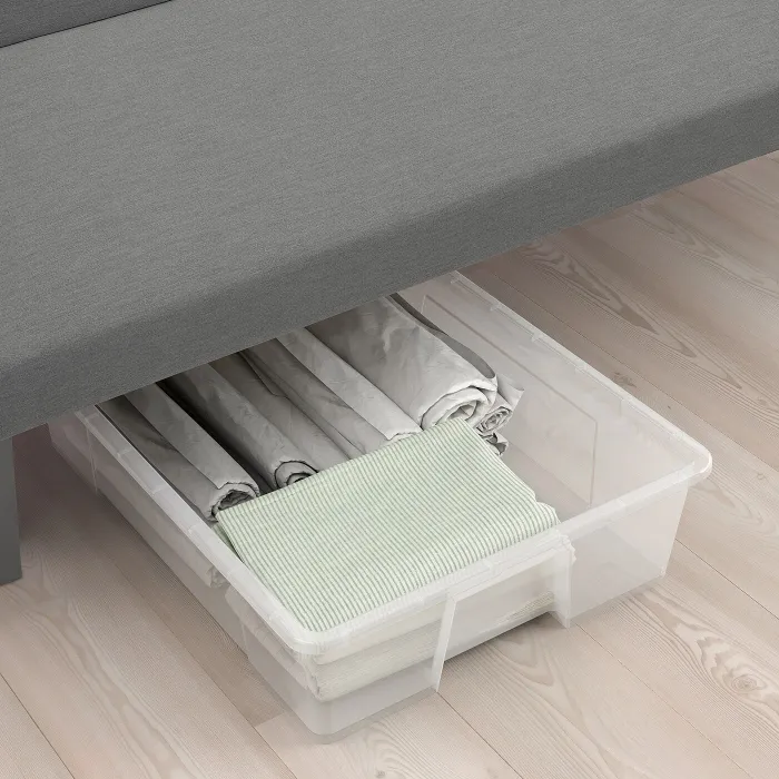Простір під диваном призначений для контейнерів, в яких можна зберігати, наприклад, постільні речі.