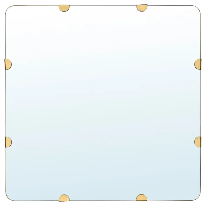 Елегантне квадратне дзеркало з видимими латунними кріпленнями та простим дубовим шпоном. Він підходить до більшості інтер'єрів і негайно освітлює та оптично збільшує кімнату.