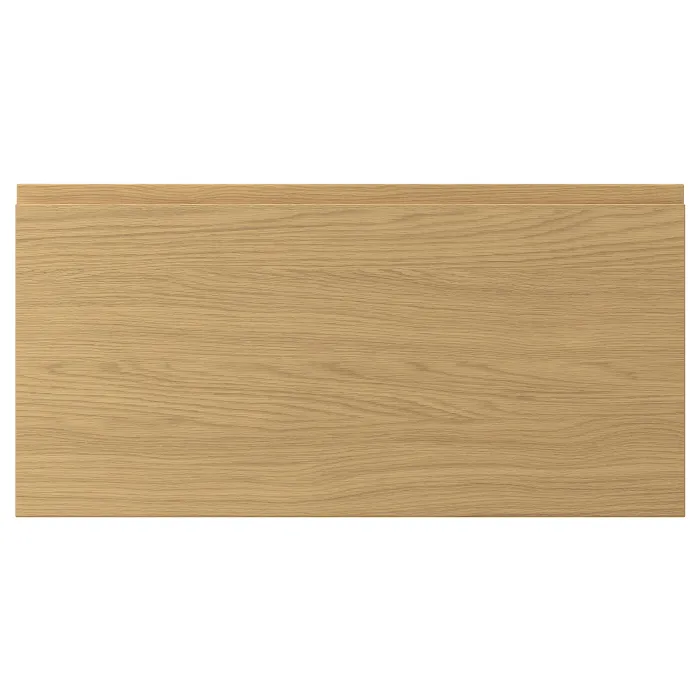 Дверцята та фасади ящиків VOXTORP зі штучного дуба зі вбудованими ручками, які ідеально поєднуються з рештою декору, створюють сучасний, елегантний ефект, повний тепла та характеру.