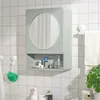Кругле дзеркало та зелений колір шафи надають ванній свіжі, елегантний вигляд.