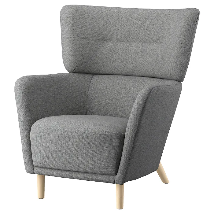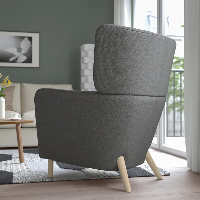 Благородні лінії, прості, але ніжно округлені форми з дерев’яними ніжками роблять крісло зручним і його можна розмістити де завгодно. пружини та м’яка піна, поперекова підтримка, підлокітники та надвисока спинка, на яку можна спертися.