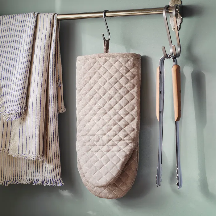 Елегантна бежева рукавичка з стьобаним наповнювачем і поліестеровим фетром, що забезпечує захист від високих температур. Безпека та комфорт! Поєднуйте з продуктами серії VALASJÖN, щоб створити гармонійний декор у традиційному стилі.
