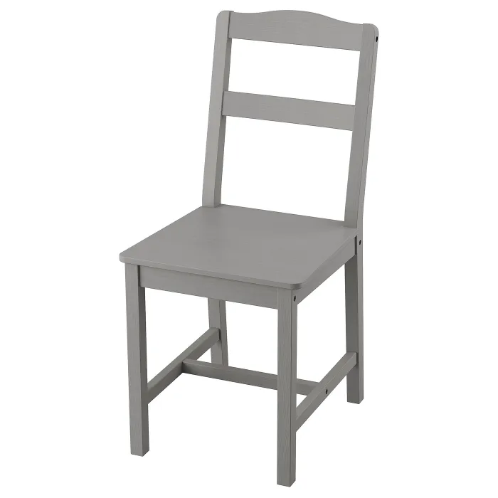 Традиційне дерев’яне крісло для кухні/їдальні з підтримкою з горизонтальними сірими хрупками прекрасно вписується в столи Хауга.