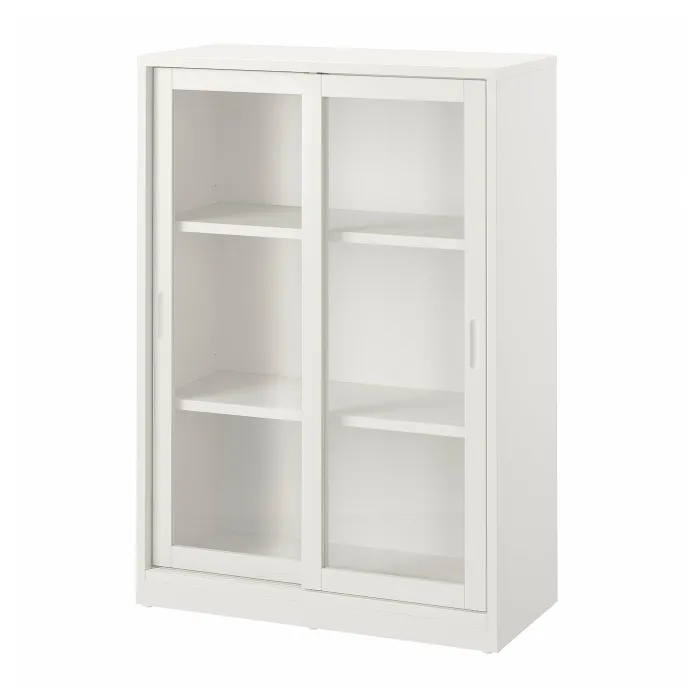 У серії Tonstad класичний дизайн поєднується з чудовим покриттям у кремовому кольорі, що надає меблом дорогоцінним виглядом. Безпечно відображати свої скарби, захищаючи їх від пилу. Розсувні двері не займають місце при відкритті.