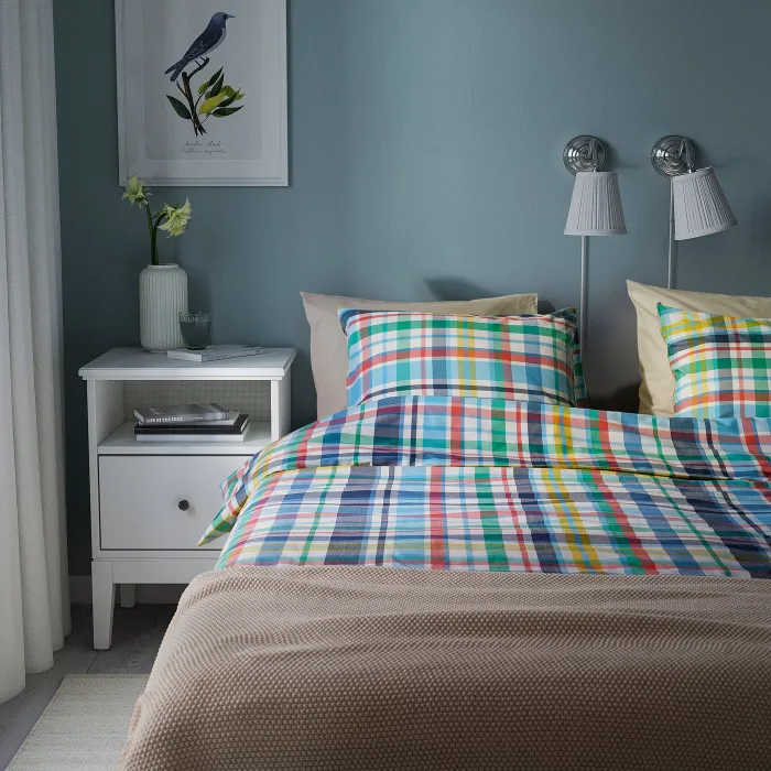 IKEA HÖSTGENTIANA(406.205.45) підодіяльник і наволочка, різнокольоровий/клітчастий