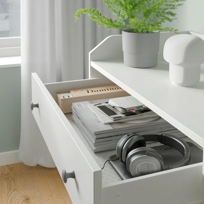 Використовуйте в усьому домі окремо або з іншими меблями HAUGA. Цей комод має 3 шухляди для закритого зберігання та полицю зверху, яка справді підкреслить ваші улюблені речі.