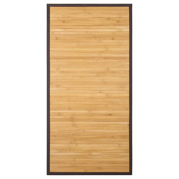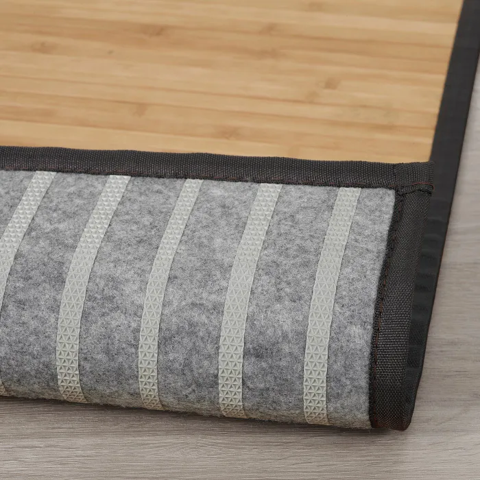 По такому килимку приємно ходити і приємно прохолодно під ногами. Виготовлений із міцного бамбука з обтягнутим краєм із тканини та нековзким матеріалом на підкладці, щоб килимок залишався на місці.