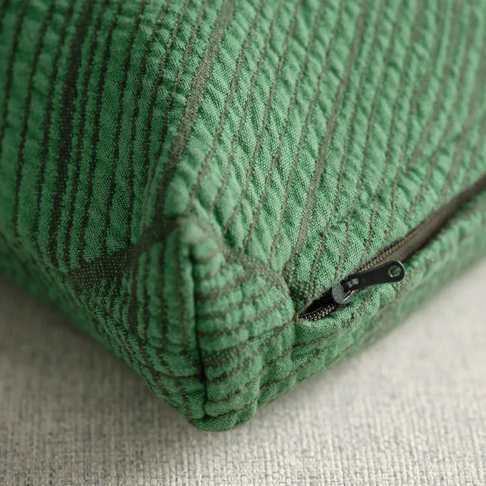 Зелена наволочка JÄTTEGRAN прикрашена природним візерунком, що нагадує листя, видиме під мікроскопом. Тканина з тактильним жаккардовим переплетенням та посиленими кутами.