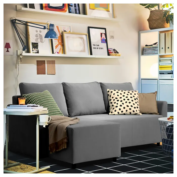 Цей диван можна легко перетворити на 2-місне ліжко та зберігати постільні речі у відсіку під сидінням, щоб вони завжди були під рукою та підтримували порядок у кімнаті.