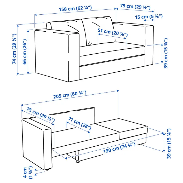 | Висота з подушками для спинки | 74 см |