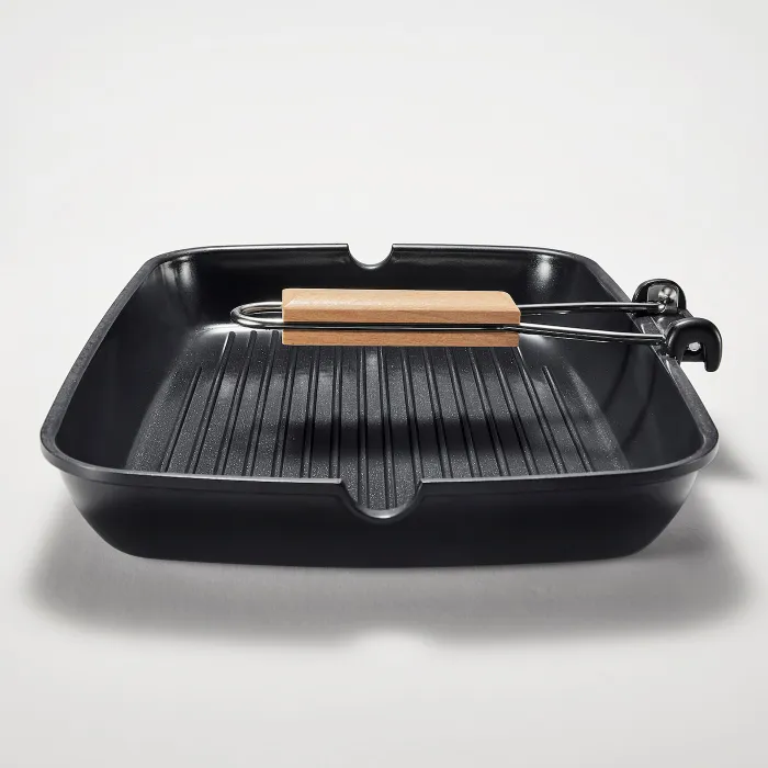 Свобо -сковорода залишає апетитні сліди барбекю і зберігає жир під підготовленими стравами. Керамічне покриття Zol-Gel заважає притиснутих, а складна ручка полегшує використання та виражає миття каструлі.