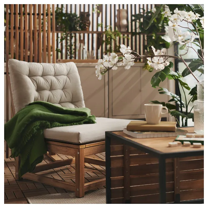 Розроблено та протестовано відповідно до садових стандартів IKEA, щоб забезпечити легкий догляд і стійкість до вицвітання, іржі та цвілі. Однак усі матеріали старіють, тому зберігайте та накривайте продукти після сезону.