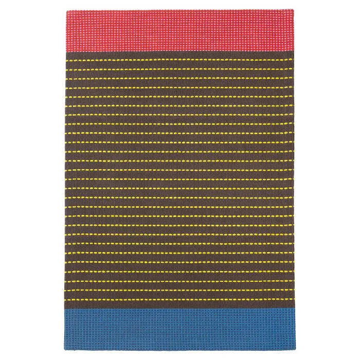 Килимок такого розміру, який ідеально підійде біля ліжка або в передпокої. Жовті смужки та червоно-сині наконечники оживлять будь-який простір. Його легко підтримувати в чистоті і важко не любити!