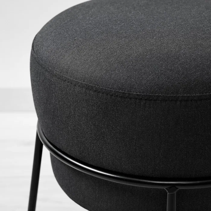 Пуф ЕММІСЛОВ формою нагадує пробку від шампанського. Гладка сталева конструкція і тканинне сидіння ніби ширяють у повітрі, створюючи сильний графічний ефект, який ідеально вписується в сучасний інтер'єр.