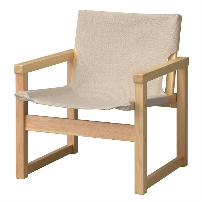 Сидіння/спинка та підлокітники стільця СЬЕЛС трохи нижче, ніж у оригінальної версії. Ми також замінили міцну тканину з бавовни на суміш льону та поліестеру.