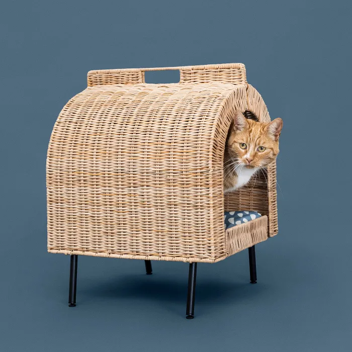 Затишний, безпечний та естетичний будинок, до якого ваша кішка може ковзати і відпочити. Зроблено з ротанга і легко переносити. Для ще більшого комфорту ви можете доповнити м'якою подушкою.