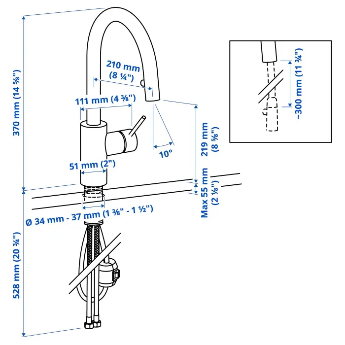 Форсунку змішувача можна витягнути приблизно на 30 см.