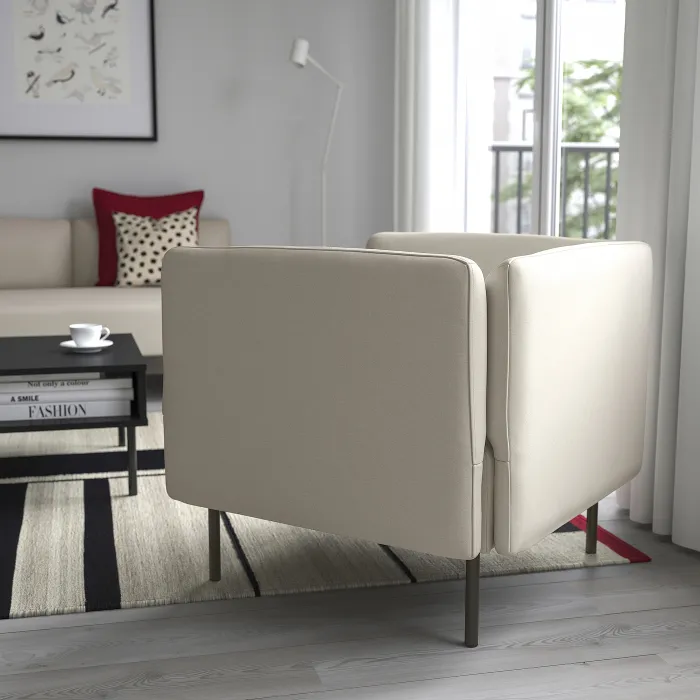 Він працює як просторе рішення для сидіння як в офісі, так і в вітальні. Через свій стильний вигляд він добре поєднується з різними інтер’єрами.