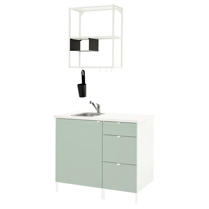 IKEA ENHET(194.991.84) кухня, білий/блідо-сіро-зелений