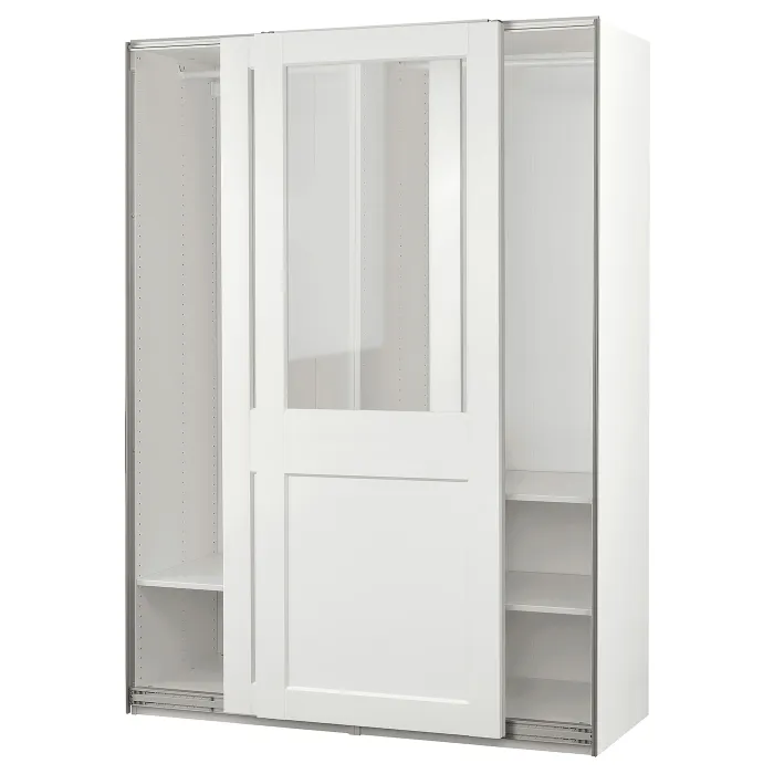 IKEA PAX / GRIMO(195.022.85) шафа з розсувними дверима, білий/прозоре скло біле