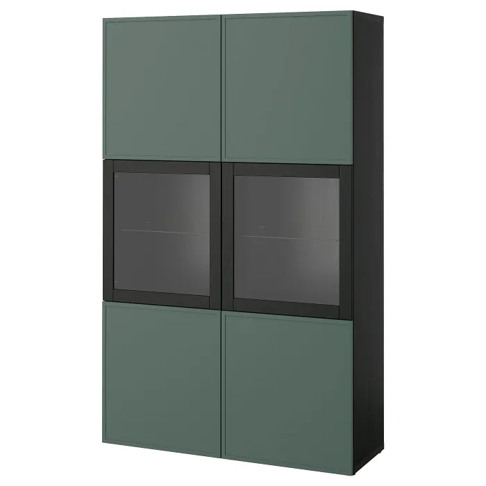 IKEA BESTÅ(195.977.64) полиця/скляні двері, чорно-коричневий/Крукмакаре темно-сіро-зелений