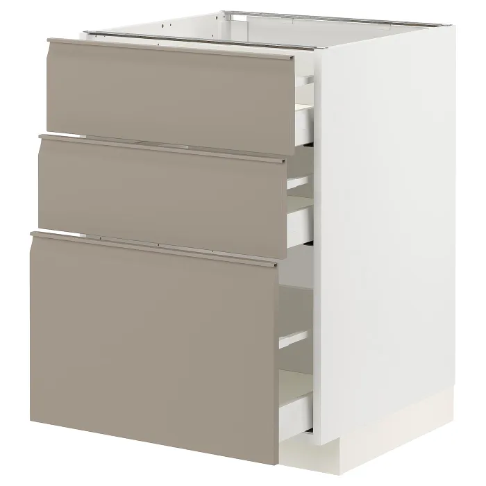 IKEA METOD / MAXIMERA(294.916.20) нижня шафа з 3 ящиками, білий/Upplöv матовий темно-бежевий