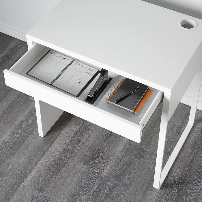 Ви можете збільшити робочу поверхню, поєднавши столи та комоди. Усі столи та комоди серії MICKE мають однакову висоту.