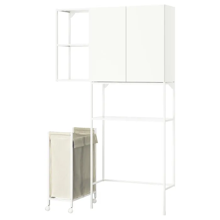 У цьому рішенні ви маєте окремі місця для зберігання та закриту шафу, де заховані миючі засоби, а також відкриті полиці, де ви можете тримати під рукою предмети повсякденного побуту.