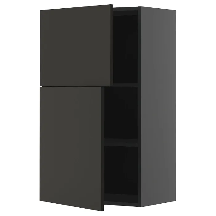 IKEA METOD(295.883.06) настінна шафа з полками/2 двері, Чарнозарій/Ніккебо матовий антрацит
