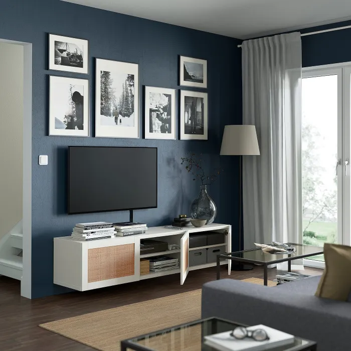 IKEA BESTÅ(394.221.84) Тумба під телевізор з дверцятами, білий/Студсвікен білий