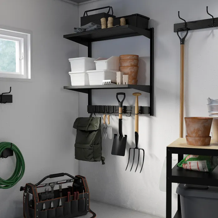 IKEA BROR(395.718.62) комбінація настінних полиць, з гачками/2 полиці/чорний