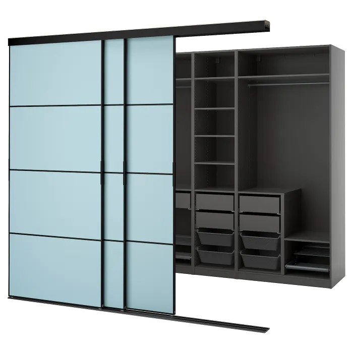 IKEA SKYTTA / PAX(495.524.86) шафа з розсувними дверима, чорний темно-сірий/Мехамн світло-синій