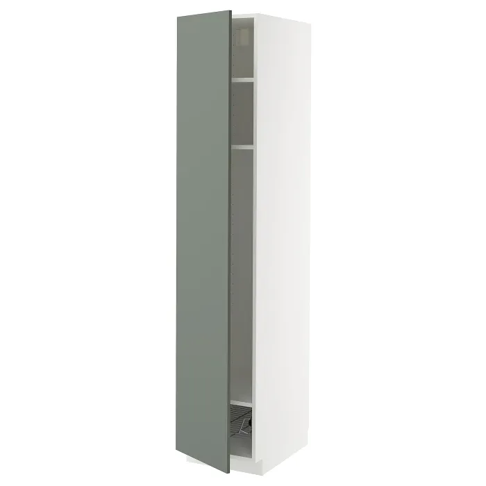 IKEA METOD(495.655.68) висока шафа, полиці/дротяний кошик, білий/Nickebo матовий сіро-зелений