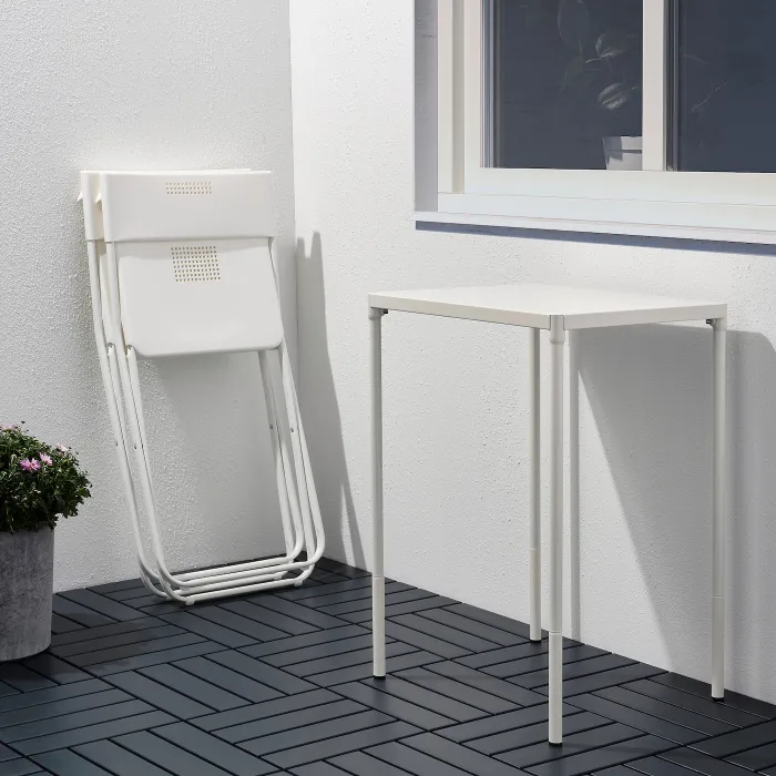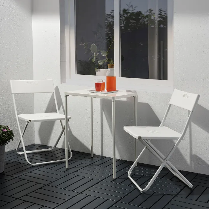 IKEA FEJAN(594.349.49) стіл+2 розкладні стільці, надворі, білий/білий