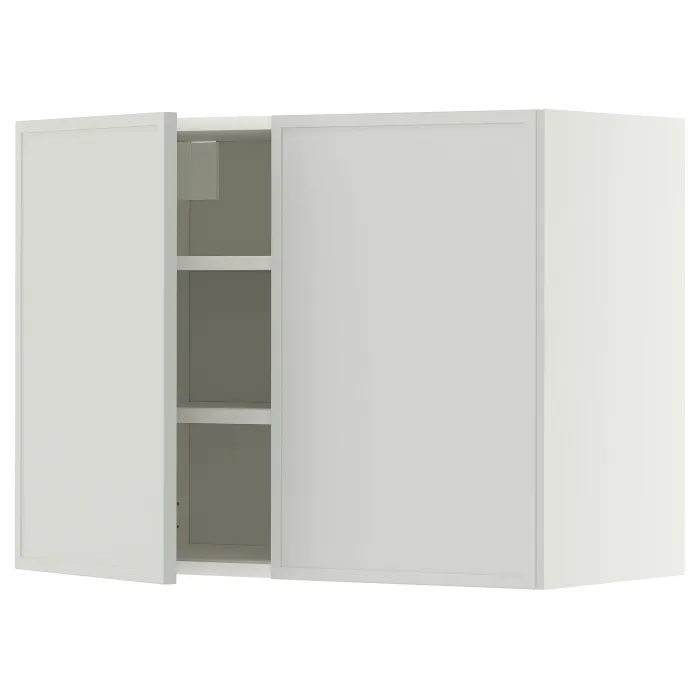 IKEA METOD(596.061.01) навісна шафа з полицями/2 двері, білий/Aspudden світло-сірий