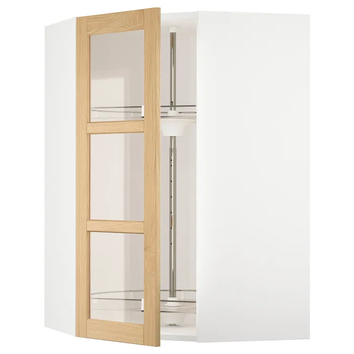 IKEA METOD(695.093.31) Кутова навісна шафа з карусельними/скляними дверима, білий/Дуб Форсбака