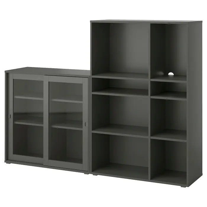 IKEA VIHALS(695.210.93) полиця/скляні двері, темно-сірий/прозоре скло