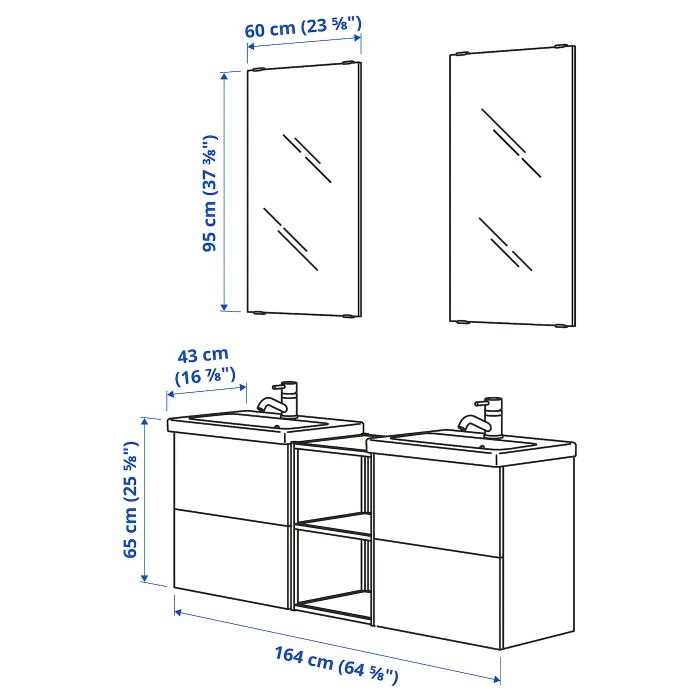 У цій комбінації є шафи для великих предметів і відкрита рама для речей, які ви хочете виставити напоказ або вивантажити предмети, які зазвичай виявляються навколо раковини.