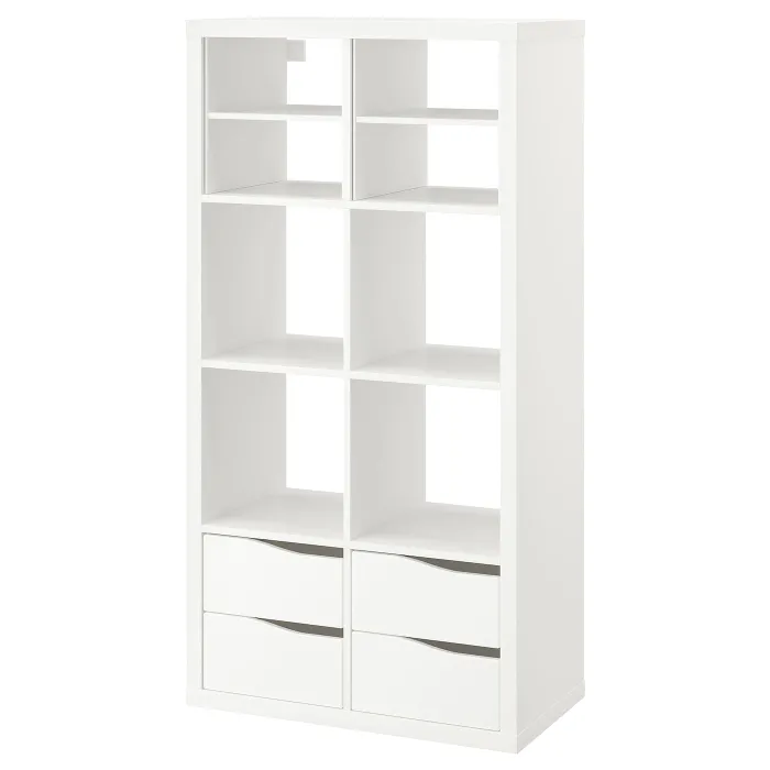 IKEA KALLAX(695.529.42) стояти, з 4 ящиками з 2 вставками з полицею/хвиля білий