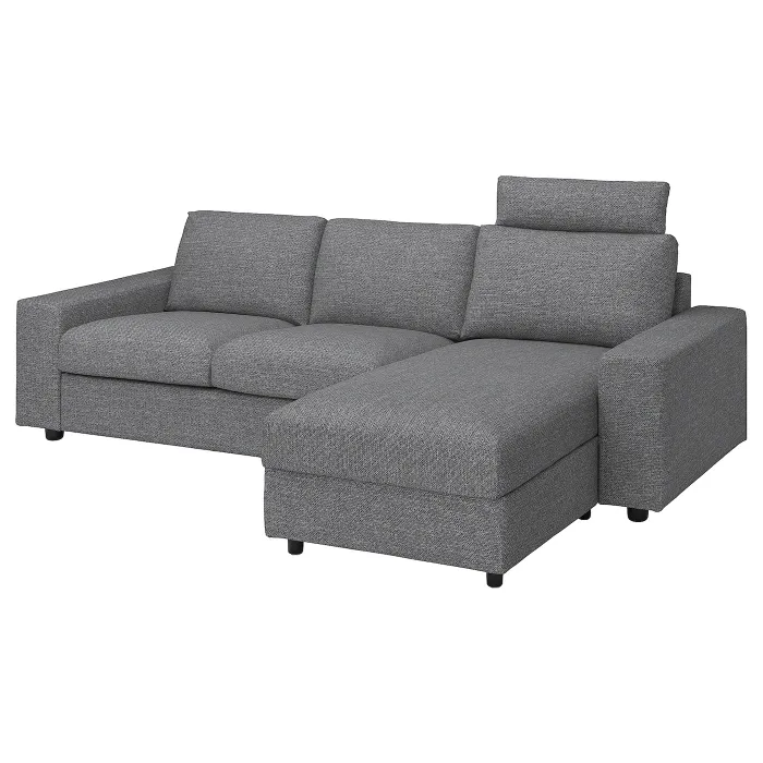 IKEA VIMLE(794.328.12) 3-місний диван з шезлонгом, з широкими підлокітниками та підголовником/Лейде сіро-чорний