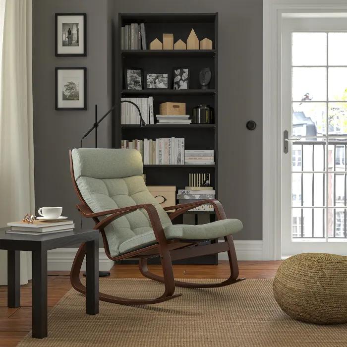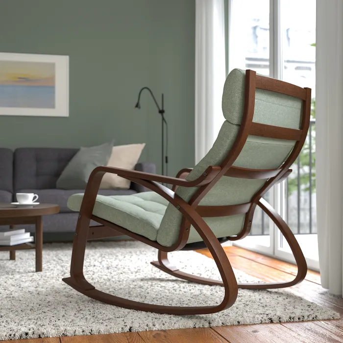 IKEA POÄNG(795.019.71) Крісло качалка, коричневий/Gunnared світло-зелений