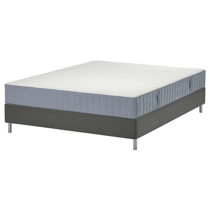 IKEA LYNGÖR(795.514.33) континентальне ліжко, Valevåg середньої твердості/світло-синій темно-сірий