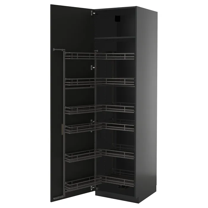 IKEA METOD(795.881.15) висока шафа з висувною коморою, чорно-сірий/Nickebo матовий антрацит