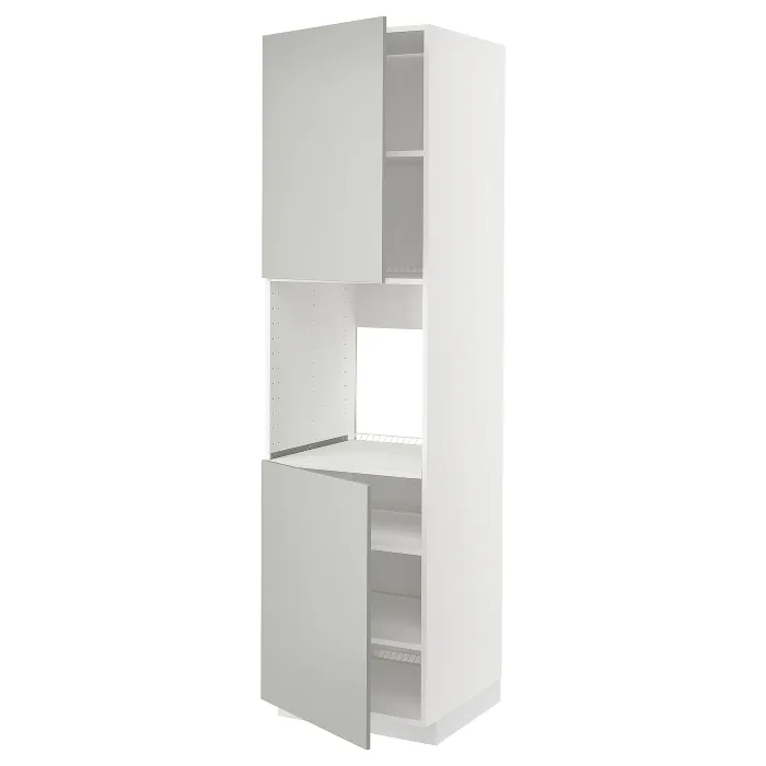 IKEA METOD(895.385.73) висока шафа для духовки, 2 дверцята/полиці, білий/Хавсторп світло-сірий