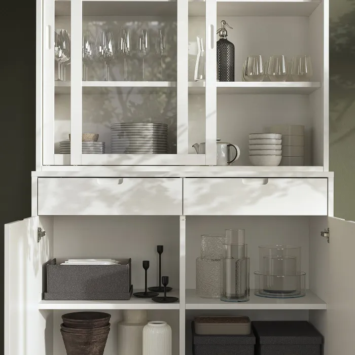 У серії Tonstad класичний дизайн поєднується з чудовим покриттям у кремовому кольорі, що надає меблом дорогоцінним виглядом. Комбінація забезпечує простір для окулярів, окулярів, серветки та інших речей, які корисні в їдальні.