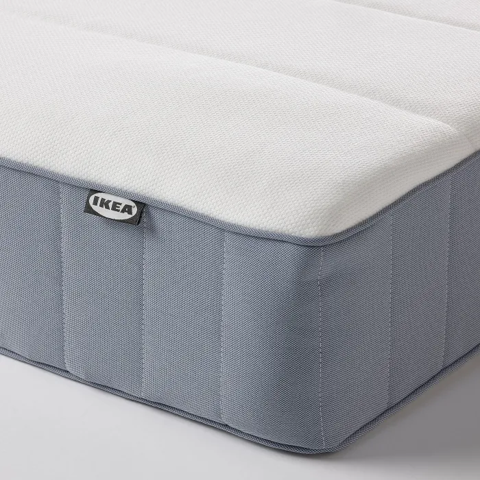 IKEA LYNGÖR(995.531.53) континентальне ліжко, Vesteröy твердий/середньотвердий/світло-синій темно-сірий