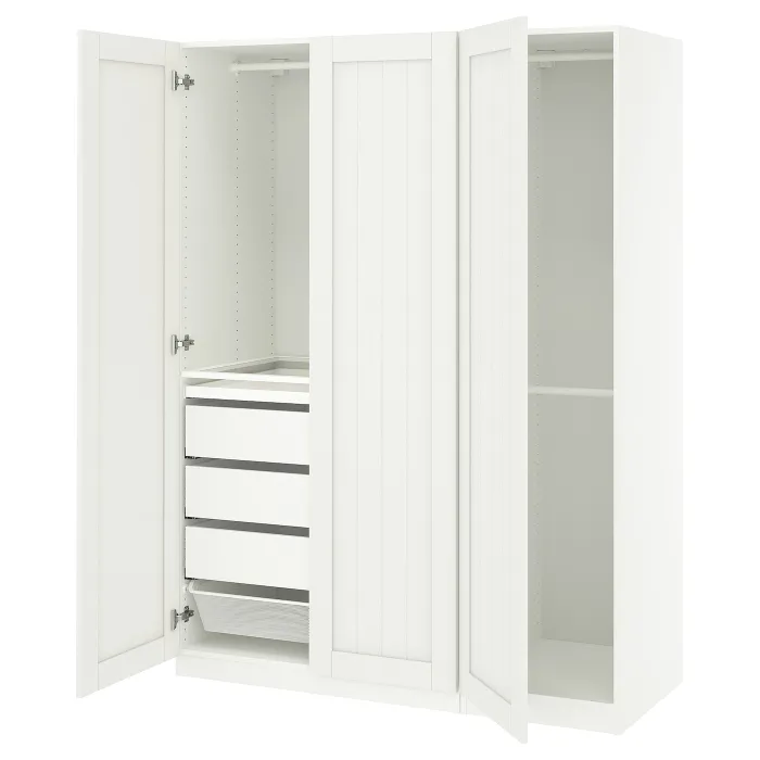 PAX дозволить вам розмістити безліч різних варіантів зберігання у такому невеликому просторі, як тут! Напрямні для короткого та довгого одягу, повітряні кошики та ящики, а також висувні полиці, які можна оптимізувати за допомогою вставок для організації внутрішнього простору.