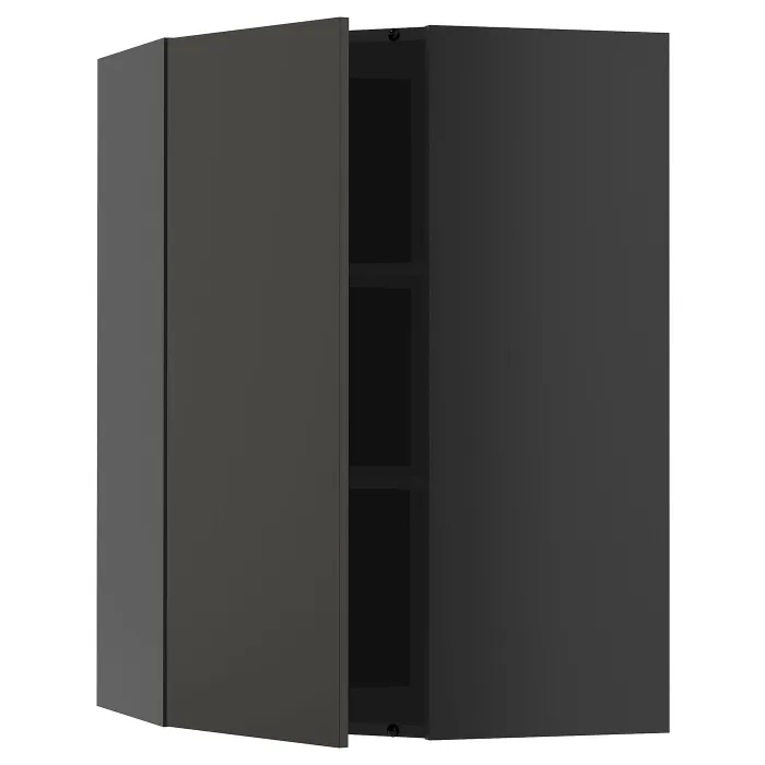 IKEA METOD(995.875.44) Кутовий настінний шафа з полками, Чарнозарій/Ніккебо матовий антрацит