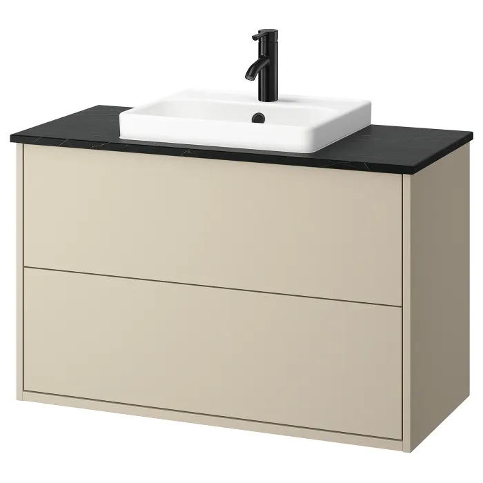 IKEA HAVBÄCK / ORRSJÖN(995.905.70) Шафи для вимивання ящиками/миттям/акумулятором, бежевий/чорний імітаційний мармур